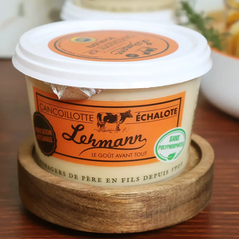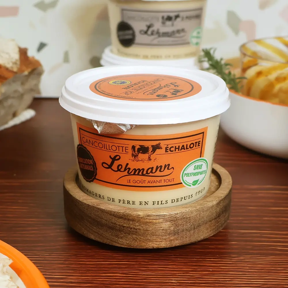 La Cancoillotte à l'Échalote est une spécialité franc-comtoise subtile et savoureuse. Elle marie la texture fondante de la cancoillotte traditionnelle à la douceur aromatique de l’échalote. Ce fromage fondu artisanal se distingue par sa légèreté, son goût délicatement relevé et son authenticité. Une création simple, mais raffinée, à savourer chaude ou froide, en tartine ou en cuisine.