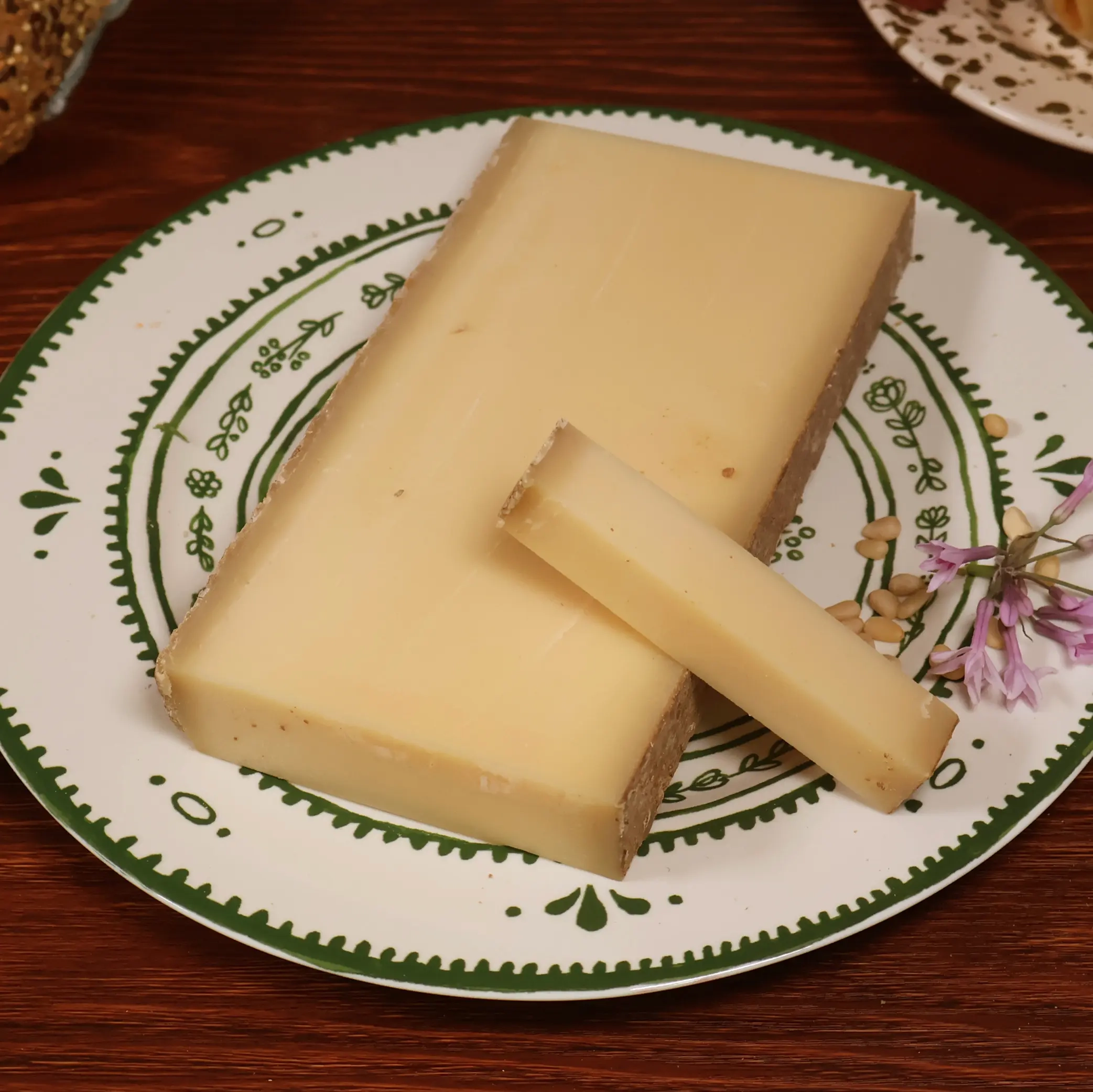 En bouche, cette pâte pressée cuite offre une explosion de saveurs. On y retrouve des notes affirmées de noisette torréfiée, de fruits secs (amande, noix), de caramel blond, mais aussi une touche boisée et légèrement torréfiée. La persistance aromatique est remarquable, la texture est à la fois ferme et fondante, et l’équilibre entre puissance et finesse fait de cette Meule une expérience à part entière.