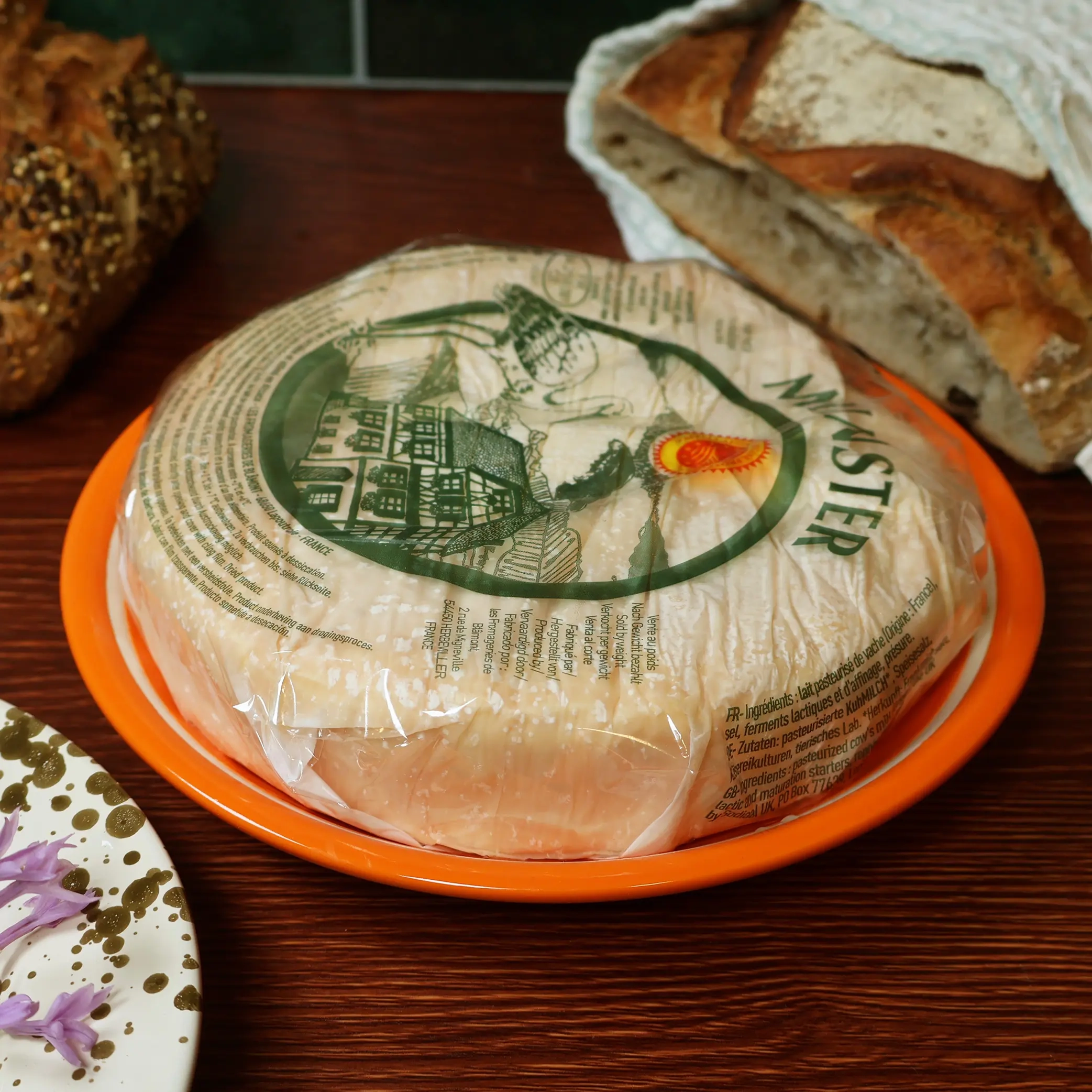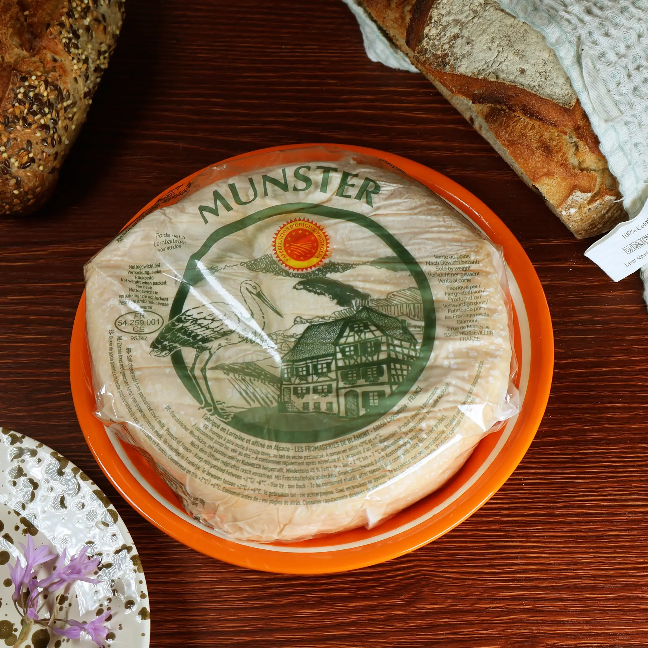 Son nom provient de la ville de Munster, berceau historique de sa production, mais sa fabrication s’étend aujourd’hui à tout le massif vosgien. Ce fromage à pâte molle et à croûte lavée est l’un des rares à exprimer aussi bien la richesse du terroir et le caractère des montagnes.