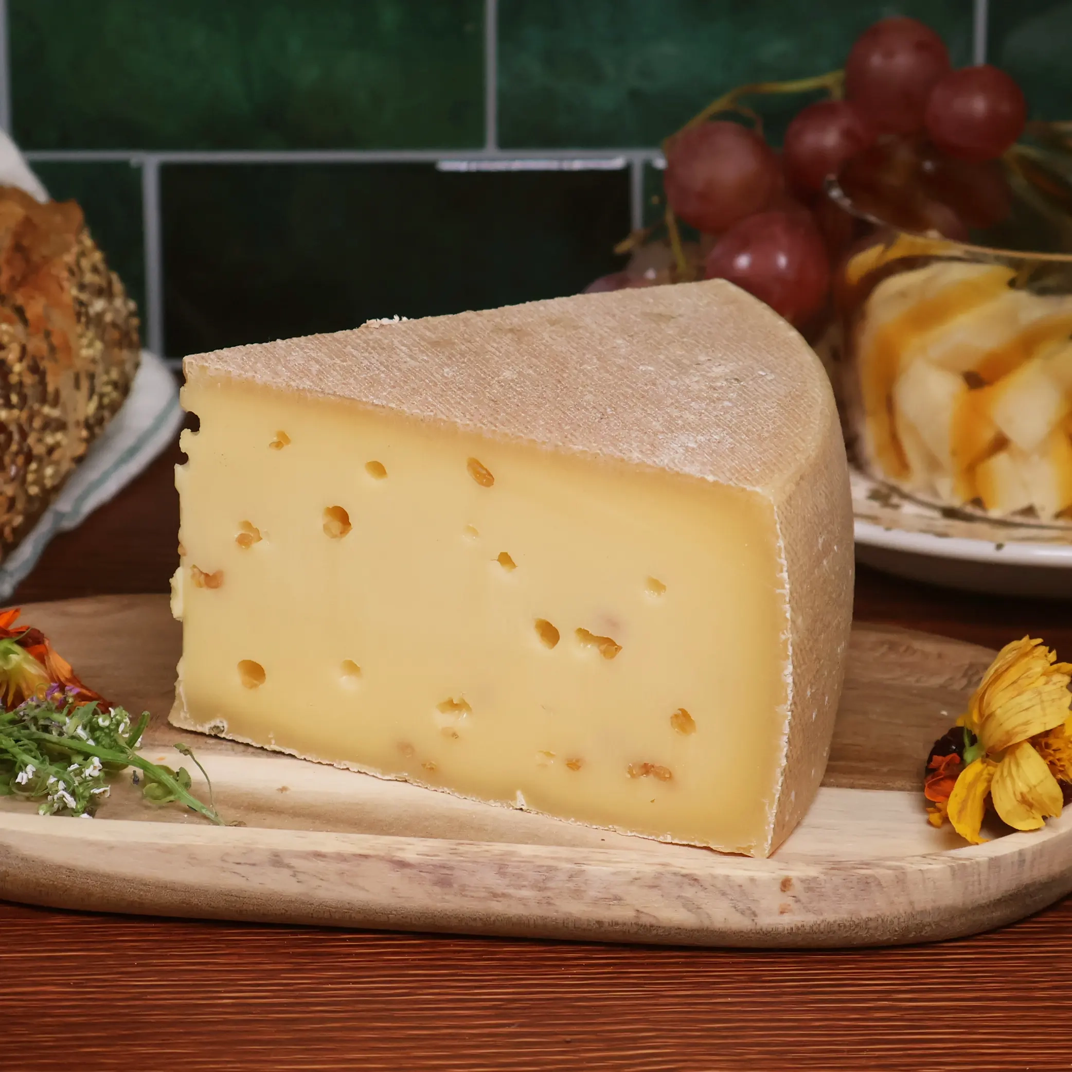 Elle s’accorde à merveille avec une Tomme aux Fleurs, un Rondin de Brebis, ou encore un Domaine de Bresse doux. Complétez avec un Comté jeune ou une Tomme de chèvre, pour varier textures et intensités. Accompagnez le tout de fruits secs, de pain au levain et d’une confiture légèrement poivrée.
